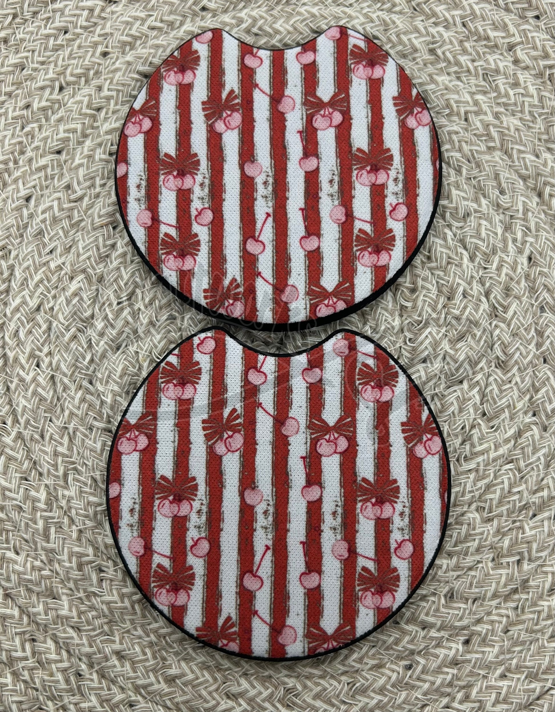 Car Coasters- Red striped cherries