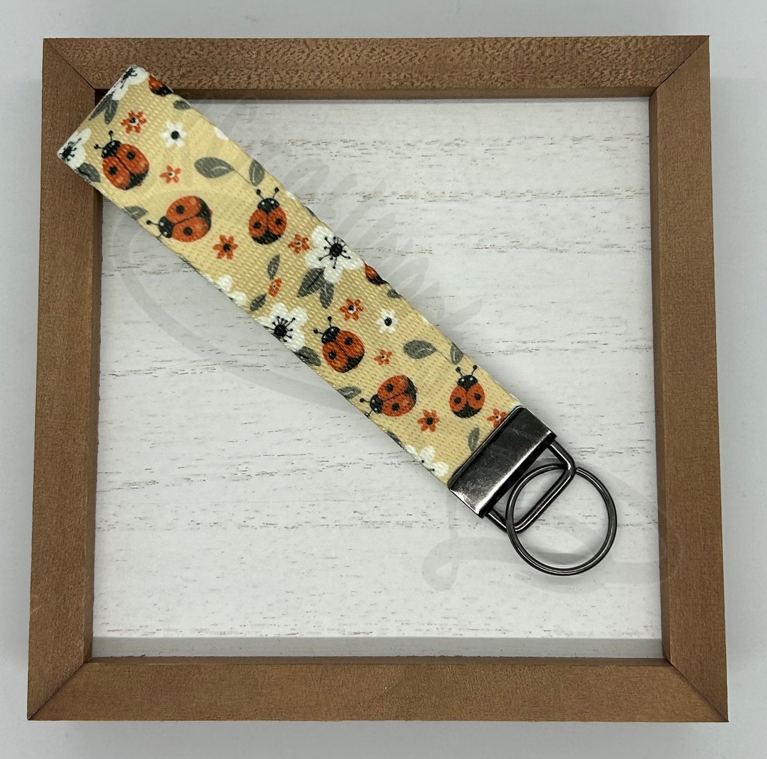 Key Fob keychain wristlet- Beige ladybugs